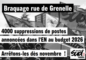 4000 suppressions de postes annoncées dans l’EN au budget 2026 : mobilisation dès Novembre