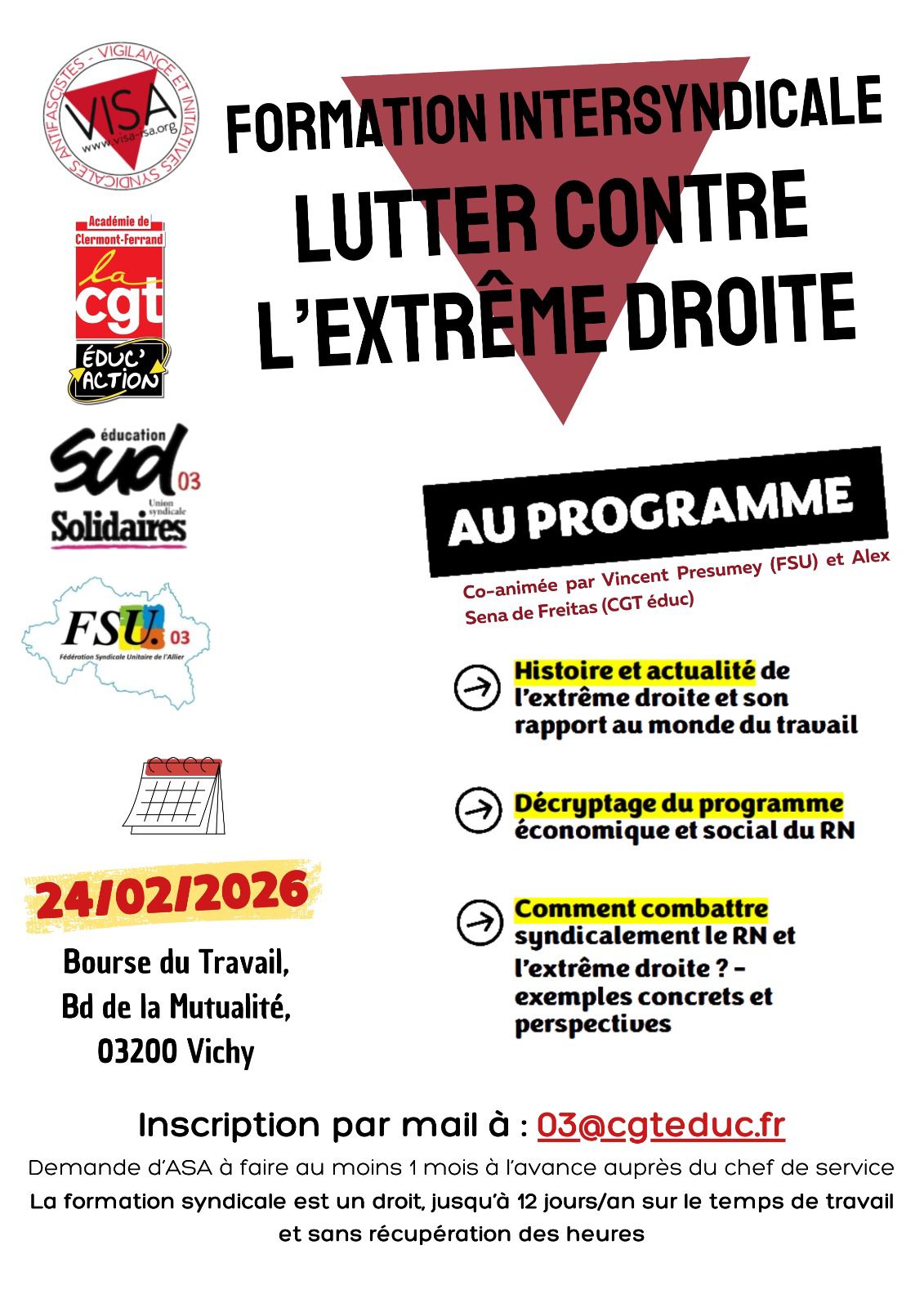 Mardi 24 février à Vichy, Bourse du travail, bld de la Mutualité